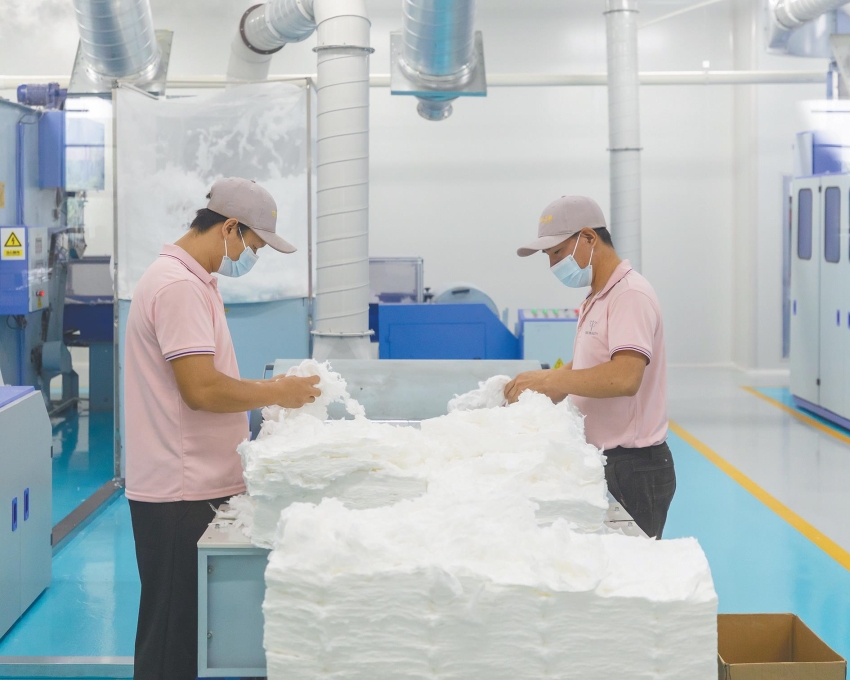 位于彭場鎮的優立美(湖北)科技有限公司,不斷豐富非織造布應用場景,專注衛生棉條研發生產,年產能達12億支,打造全球領先的衛生用品生產研發基地。圖為10月18日,工人正在車間作業。攝影 記者鄭恒